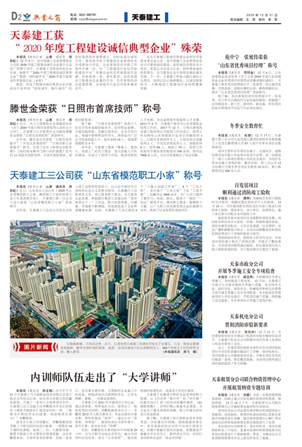 天泰建工獲“2020年度工程建設(shè)誠信典型企業(yè)”殊榮